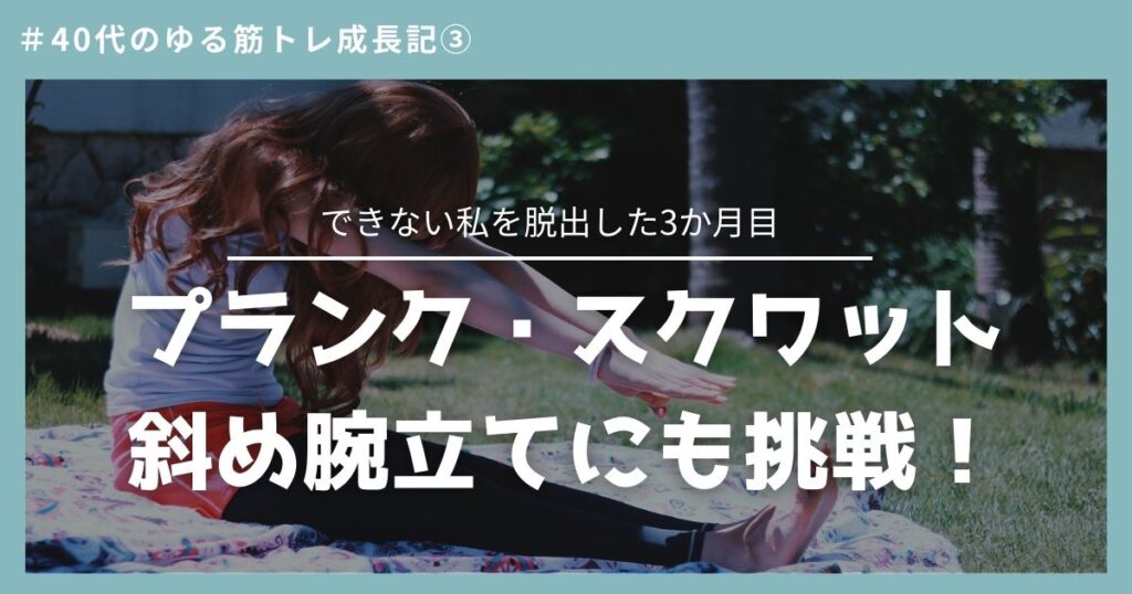 【40代のゆる筋トレ成長記③】プランク・スクワット・斜め腕立てに挑戦!“できない私”を脱出した3か月目の変化